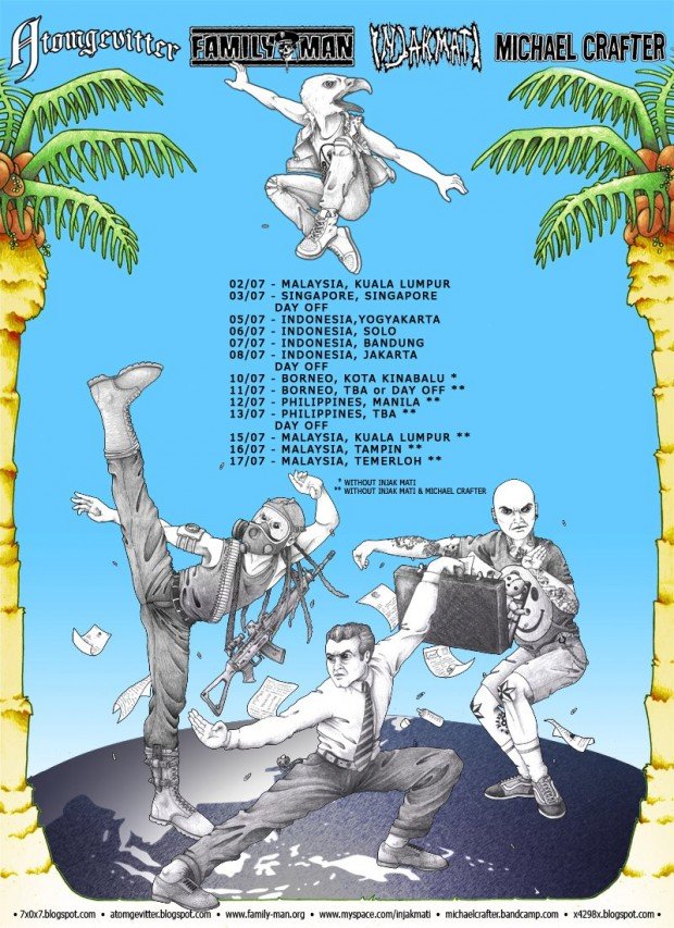 - 360º Head Rotation abrasion apparatus Atomic Death bad idea benzoate blackhole radioshow carburetor dung chu crust die wrecked folk-punk ghaust grindcore guiguisuisui hardcore istukas istukas over disneyland jakarta Jalan Sehala jazz-punk-improv kuala lumpur leatherface mass separation mr sterile assembly Osmantikos pazahora philippines pink noize prohibited projects pusher radioshow raivoraittius rumah api s.i.n. sharon stoned shitnoise bastards singer-songwriter steve towson substation terssalahh the bollocks Tools of the Trade virginia on duty wormrot