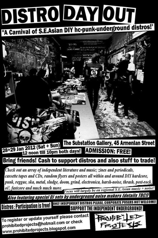 Prohibited Projects will be holding and co-ordinating DISTRO DAY OUT, a Saturday-Sunday ‘outing’ for all local and regional DIY distros at The Subsation Gallery on 28 and 29 January 2011 from 10am to 9pm (timing subject to change).