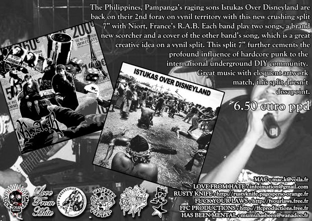 Philippines’s ISTUKAS meets France’s RAB, released by five different labels ISTUKAS: http://www.myspace.com/lovefromhate RAB: http://www.myspace.com/79rab Get this from ISTUKAS’ own label LOVE FROM HATE RECORDS contact: infoimation at gmail dot com (Francis)