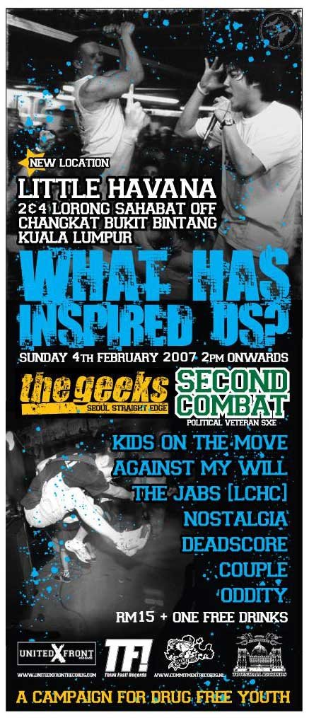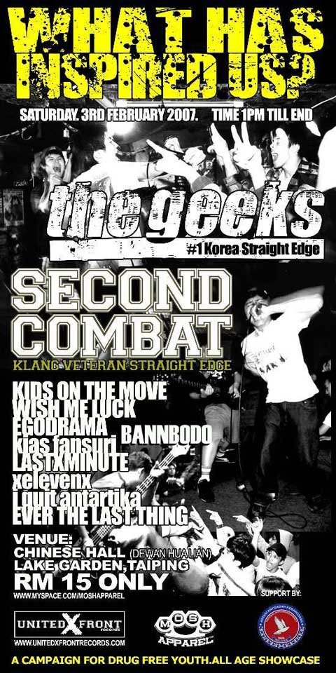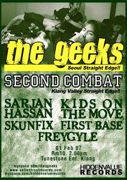 The Geeks: One of the first South Korean straight-edge bands and still going strong. Pretty much influenced by the early American youth-crew tradition. The band’s Malaysian-Singapore visit starts Jan 27th in Singapore and ends on February 4th in KL.